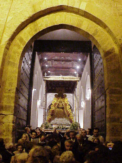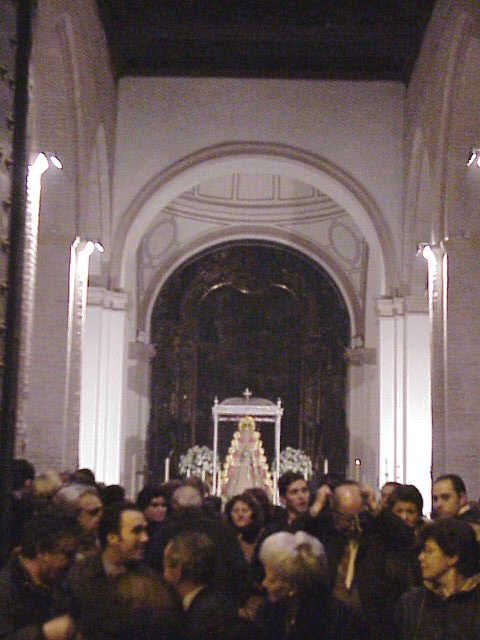EN TORNO A LAS ANDAS DE LA VIRGEN DEL ROCIO QUE ENMARCABA EL PORTICO DE