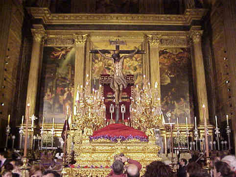 El Cristo del Amor frente al altar ,la Virgen del Socorro a su izquierda