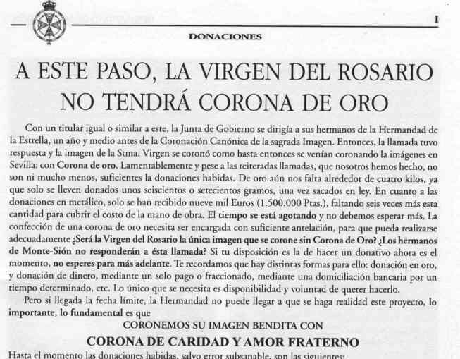 para la papeleta de sitio una limosna de 15 € (para los Hermanos mayores