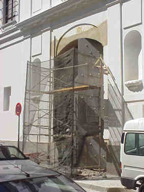 un andamio , andamios que han florecido en el casco historico antiguo ,