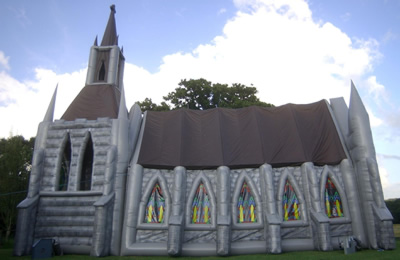 Una iglesia hinchable ,transportables ,gotica, mas no se puede perdir