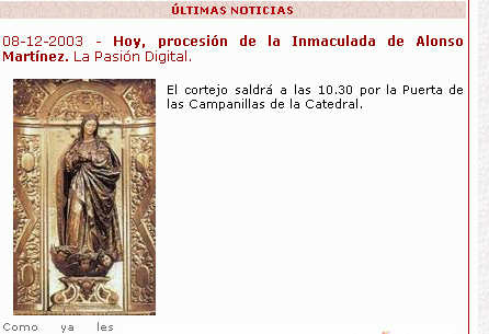 de la Inmaculada que aparece en la noticia de la Voluntariosa Web Empresarial