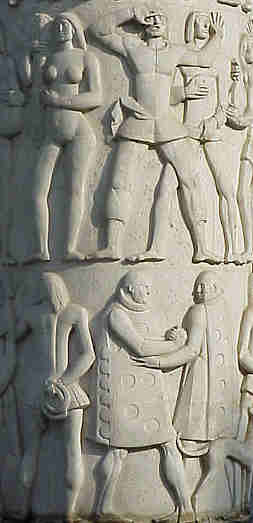 En su lado derecho segun se mira a la derecha una columna con cuatro pisos de bajorelieves, de personajes del epico viaje que circunvalaron la tierra ( sacerdotes , marineros, indigenas, soldados) que curiosamente el escultor utilizo rostro de personajes contemporaneos al monumento , como Sanchez Corbacho, el arquitecto Antonio Delgado Roig o un autoretrato del propio autor .-