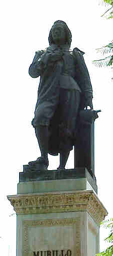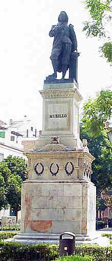 | El Museo ademas de una hermandad de penitencia , es eso mismo, un museo de pintura y no un museo cualquiera sino que tenemos en Sevilla en cantidad y calidad la segunda pinacoteca de España, es decir despues del Museo del Prado, el Museo de Bellas Artes de Sevilla es el mas importante de España.- Si tiene el buen gusto de acercarse por alli un domingo sobre todo acompañado por sus hijos al cruzar la plaza del Museo , ademas de un monto de jovenes y no tan jovenes exponen en su jardines su afortunadas o desafortunadas obras pictoricas , encontrará en el centro este impresionante monumento dedicado a Murillo.- Es de los monumentos escultoricos mas antiguo de Sevilla. Obra del escultor madrileño Sabino de Medina, fechada en 1864, en la que se representa al genial pintor de pie apoyado en un estrado donde sostiene una paleta y un boceto .El pedestal es obra del arquitecto Demetrio de los Rios , esta compuesto de cuatro cuerpos de marmol y con piezas de bronce incrustradas .- La iniciativa de este monumento la tuvo la Real Academia de Bellas Artes en honor a uno de sus fundadores Bartolomé Esteban Murillo siendo dicha propuesta bien acogida por la Diputacion , Ayuntamineto y demas entidades sevillanas .-