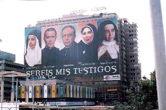 El cuadro de los cinco beatos que hoy han sido canonizados, y que de izquierda a derecha son: Sor Ángela de la Cruz, José María Rubio, Pedro Poveda, Genoveva Torres y Maravillas de Jesús.