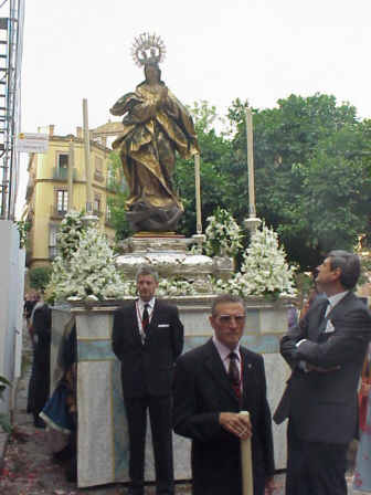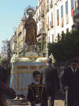 3 de Diciembre de 2003 El próximo dia 8 de Diciembre , el Dia de la Inmaculada o de la Purisima , con indenpendencia del dia de la semana que sea es un auténtico Domingo de Ramos de Invierno . Salvo que la memoria no me sea infiel se celebran en Sevilla un total de dieciesies Besamanos a nuestras Dolorosas ,tanto la Sevilla intramuros, como en la Sevilla extramuros . En todo estas iglesias, parroquias y capillas, usted vera el capilleo con el terno azul marino o gris marengo, escudito de la hermandad en la solapa , medalla al cuello; y aquimiseñora con los niños mu arreglaitos; mesas petitorias y un inmeso olor a incienso y a flores . Lo dicho una auténtica mañana de Domingo de Ramos .- Por la tarde, en nuestra Catedral , cosa rara, no habrá turistas y para variar se le rendira culto a la Madre de Dios con la octava de la Inmaculada donde bailaran nuestros universales seises ( absurdamente copiados en la vecina localidad de Dos Hermanas para el Valme (?) y en esta ocasion iran con las bandas blancas y celestes.- Señores esta es nuestra tradición, en el dia de la Inmaculada en Sevilla no procesionan Inmaculadas , en Sevilla las Inmaculadas procesionan en el Corpus , esa es nuestra tradicion , uso, costumbres . leyes no escritas .- Como el proximo dia 8 de Diciembre nuestro Cardenal