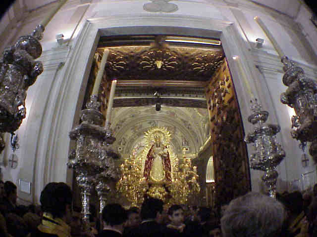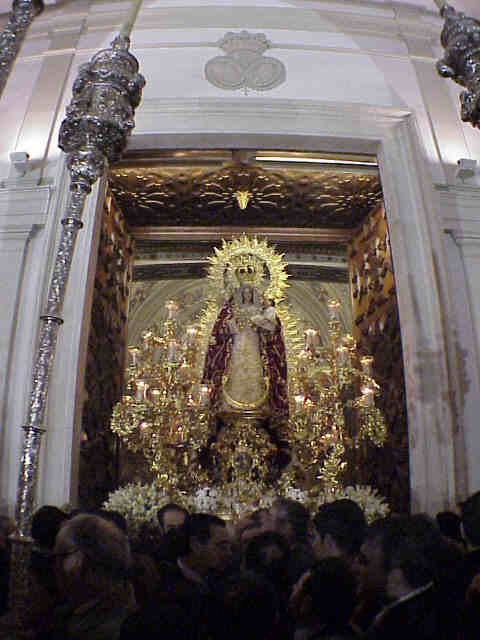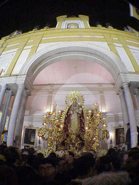 LLEGO HASTA EL ATRIO DE LA BASILICA MACARENA . SE ASOMÓ A LA PUERTA