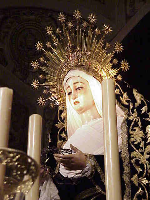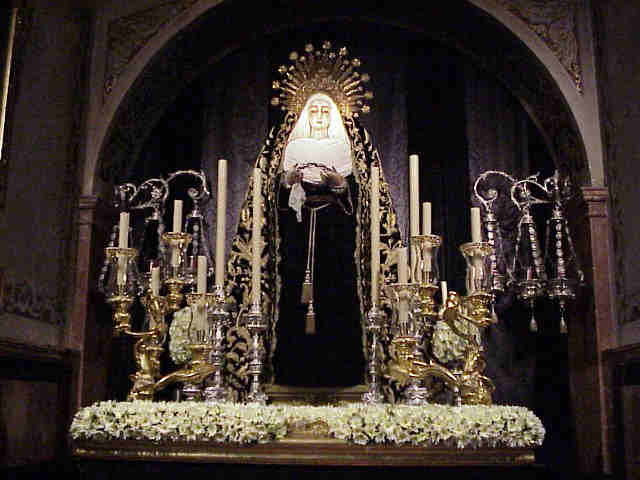 VISPERAS A SU TRASLADO AL CEMENTERIO 1 de Noviembre de 2003 , 8H 30 de la mañana CON ESTA SOBRIEDAD, CON ESTA FINURA , CON ESTA SEVILLANIA IRA MAÑANA LA SOLEDAD DE SAN LORENZO EN SU TRASLADO AL CEMENTERIO DE SAN FERNANDO A PRESIDIR LA MISA DE DIFUNTOS QUE ADEMAS ESTE AÑOS SE CONMEMORA EL 150 ANIVERSARIO DE NUESTRO CAMPO SANTO NO HAY DUDA QUE LA PRIOSTIA SOLEANA UNA VEZ MAS HA SABIDO ESTAR A LA ALTURA,CON LA REGLA DE ORO DE LA ELEGANCIA LA SENCILLEZ