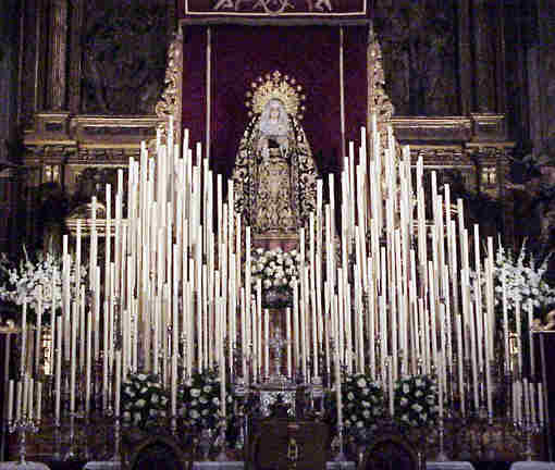 al montar es mas espectacular y mas iluminado altar de quinario de Sevilla