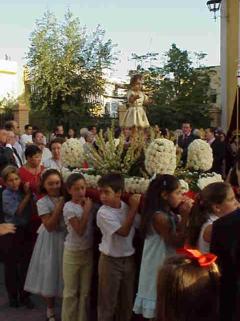 NIÑO JESUS EN PARIHUELA PORTADO POR NIÑOS |