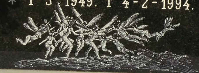 Observen el curioso detalle de la base de la lapida con un monto de hadas revoloteadoras