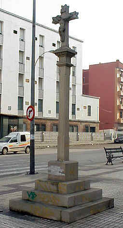 5 de Febrero de 2003 Por aquello que estamos en año Jacobeo ( Xacobeo en gallego) 2004, ademas de unos lamentables azulejos con una venera ,modelo cuarto de baño apartamento playero , exite este bello cruceiro que aqui ven semejante a los que se encuentra en el Camino de Santiago .- Obra del escultor gallego Feal , es un regalo a Sevilla de la entonces Junta de Galicia con motivo de la Exposicion Univeral del 1992,En el pedestal reza : "Galicia a la ciudad de Sevilla Julio 1992 Exposicion Universal".- Se encuentra ubicada en la esquina formada por la Ronda de Maria Auxiliadoracon Jose Laguillo y a raiz del chapapote al cruceiro , le pusieron todo tipo de baderolas negras de Nunca Mais, por aquello del chapapote y que digo yo, que se podria volver a pasar por alli y de paso quitarle las pintadas de que es objeto este bello monumento y que es otra forma de chapapote de la movida .- El Lar Gallego de Sevilla tiene solicitado a nuestro Ayuntamiento que tanto le gusta cambiar los nombres a las calles ,para este enclave tiene solicitado el nombre de Plaza de Galicia , que hasta ahora no hay en nuestro callejero ninguna calle dedicado a esta bella tierra . Galicia del PP Fraga , ayuntamiento del Sevilla del PSOE, chunga esta la cosa .-