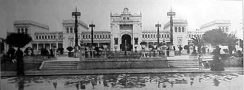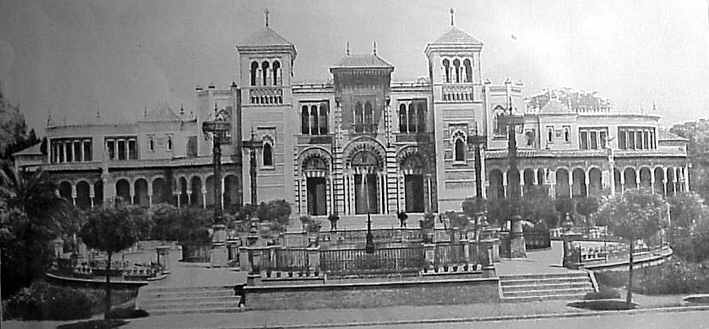 EN ESTA CURIOSA FOTO PANORAMICA DE LA EPOCA ( OBSERVARA QUE LOS ARBOLES Y PALMERAS ESTAN RECIEN PLANTADOS A LA IZQUIERDA EN ENTONCES LLAMADO PALACIO DE LA INDUSTRIAS Y ARTES DECORATIVAS ( HOY PABELLON MUDEJAR) AL FRENTE EL PABELLON REAL Y A LA DERECHA EN EL IMPRESIONATE PALACIO DE LAS BELLAS ARTES ( HOY MUSEO ARQUEOLOGICO) . LA ESPECTACULARIDAD DE ESTA PLAZA NO FUE AJENA LA INDUSTRIA HOLLYWOODIENSE Y EN ELLA SE RODARON MITICAS PELICULAS COMO LAWRENCE DE ARABIA DE DAVID LEAN O EL VIENTO Y EL LEON