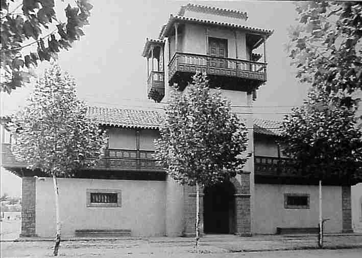 PANORAMICA COMPLETA DEL PALACIO DE LAS INDUSTRIAS Y ARTES DECORATIVAS ( HOY PABELLON MUDEJAR SEDE DEL MUSEO DE ARTES Y COSTUMBRES POPULARES, ESTA FOTO DADO LA ALTURA DE LOS ARBOLES SERIA IMPOSIBLE HACERLA 1911-1916