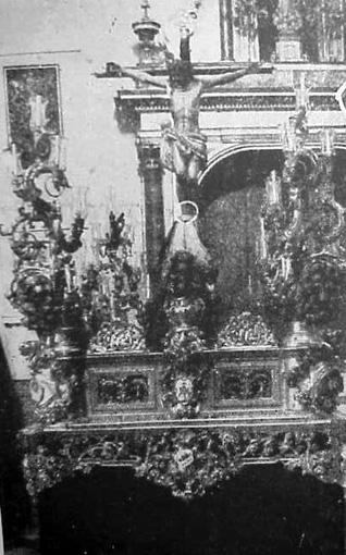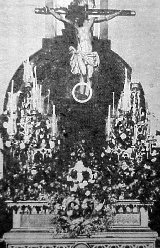 a los pies del Cristo, así procesionó hasta 1928. La imagen