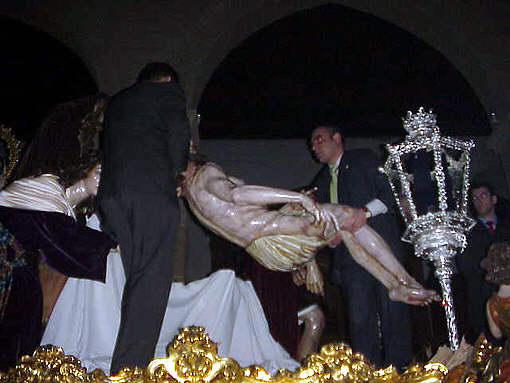22 de Marzo de 2004 Tras el cabildo de Toma de Horas , vemos una pancarta, en esta interminable carrera de las visperas donde se nos anuncia que solo falta quince dias ; que la meta, y por tanto el fin ,estan a la vuelta de la esquina .- Dentro de esta semana y mas en la proxima e incluso en los casi albores del Domingo de Ramos, se producirá un transito de Cristos y de Virgenes desde sus retablos; donde lo hemos vistos en la soledad bajo el silente canto de la chicharra; a los que hemos rezado con las primeras lluvias del otoño; a los que hemos acompañados en sus cultos invernales cuaresmales ; hasta el paso , en estas fechas donde la primavera vuelve a brotar entre los arboles y nuestros corazones .- La regla, es que no hay reglas; los traslados a los pasos seran publicos o formaran parte de esa mágica Sevilla oculta; seran solemnes entre incienso, acolitos y cirios o seran con el no menos solemne esfuerzo de los que les quitan horas a su descanso, a su familia, a sus estudios , en las horas de la madrugada , en una iglesia iluminada portaran entre sus manos a sus Sagrados Titulares , a un altar efimero ,como es un paso sevillano .- La no regla de las reglas , dictaran en esta o
