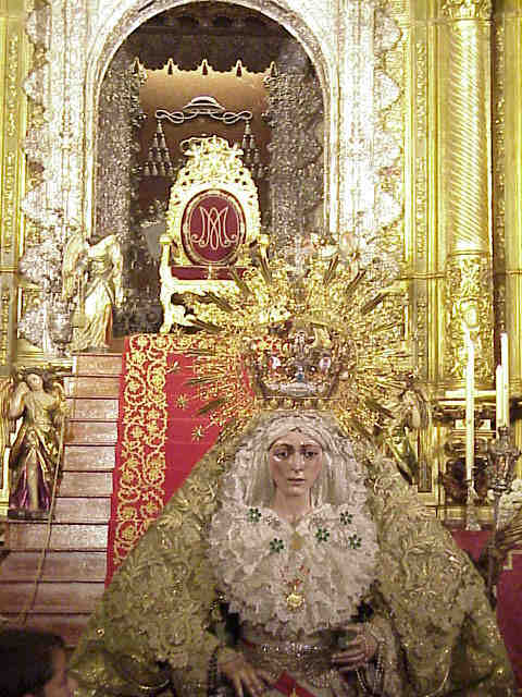 BESAMANOS ESPERANZA MACARENA 2004 18 de Diciembre de 2004 Ayer un amigo me desea Feliz Navidad y le rectifiqué cariñosamente , no, aqui en Sevilla o quizas en Ocnos ; aún no ha comenzado la Navidad, basta pasarse junto al Arco para comprobarlo. Cuando Ella que ha bajado a la soleria de la Basílica , para que saturenos nuestras retinas de su inagotable belleza siempre por descubrir, vuelva a su camarín, entonces podremos hablar y pensar en Navidades