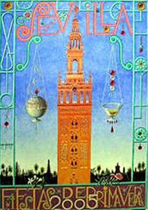 9 de Noviembre de 2004 Palabrita del Niño Jesus de la Sacramental del Sagrario , que yo en la Facultad de Bellas Artes de Sevilla ponía la asignatura de cartelografia , creando una catedra y todo; pues quien sabe, con el tiempo a algún artista afamado o consagrado le encargan un cartel sobre la Semana Santa y la Feria de Sevilla y te salen pintandote esto .- ¿Tan dificil es pintar un cartel ?, ¿tan didicil es como dice el chiste que un ruso, un americnao y un chino vean un cartel y diga:" Uy mira la Semana Santa y la Feria de Sevilla"?. ¿Quien le ha dciho al autor de esta obra que un cartel necesita ir aparejado de un manual de instrucciones como si fuera un teléfono movil ? A la izquierda lo que parece un decimonónico globo aerostático, por lo visto es un incesiario ( no hay duda de que pocos incensiarios ha visto este señor y bajo él, un ramito de azahar representado a la Semana Santa .A la derecha modelo copa anuncio de Martini, una copa veneciana ( algo indiscutiblemente muy nuestro) , del que brotan no lagrimas negras, del Bebo y el Cigala, sino rojas, que hacen brotar claveles rojos representado la Feria y esto que a nosotros nos lo tiene que explicar, expliqueselo, a alguien que viene de la calle y lo que se pretende precisamente es que venga ; que despues los hoteleros se nos ponen a llorar por las esquinas como los comerciantes del casco historico, despues eso si por lo visto el metro cuadro en Tetuan es mas caro que en la Castellana de Madrid .- Curiosamente en tan simbólico carte, la Giralda ,obviamente representa a Sevilla y que hasta ahora habia ocupado un papel secundario ,en un cartel donde aparece una flamenca, un nazareno, un palio, un caballista, unos farolillos , de ahi lo de Semana Santa de Sevilla, Feria de Sevilla o Fiesta de Sevilla ; cobra protagonismo de papel principal , pues todo es Giralda, y parece que el cartel grita solo Sevilla a secas .- Como dijo Chaplin , una buena pelicula es aquella que se entiende sin voz, solo por el lenguaje de la imagenes ; pues oiga hagan lo mismo, en un ejercicio mental o con algun programa de tratamiento gráfico ; quitele al cartel el nombre de Sevilla y el rotulo inferior de Fiestas Primaverales 2005, contemplenlo y despues preguntese exactamente de que coño le estan informando con el mismo .- Lo exceso de originalidad y de simbolismos traen estas cosas. Desde Gustavo Bacarisa, salvo honrosas y puntuales excepciones, paaece que hacer un cartel para Sevilla es una asignatura (que no existe en nuestra facultad ) absolutamente pendiente .- Mejor asi la gente nos se entera y estamos mas tranquilos en Semana Santa y Feria .-