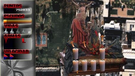 usando al Gran Poder, la Macarena y el Cristo de la Salud como fondo de