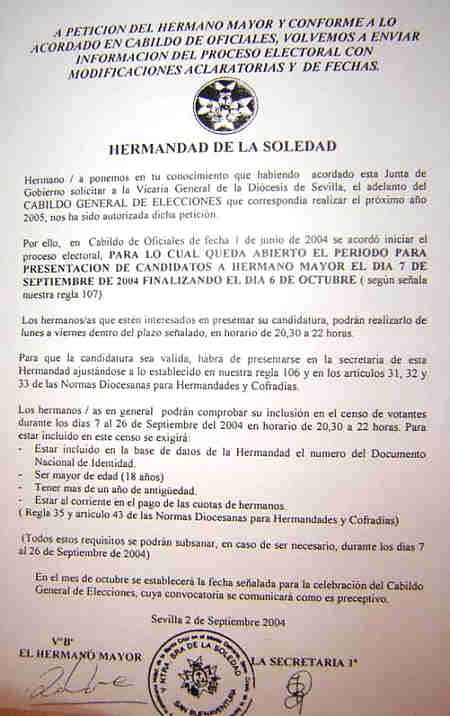 sentir de su junta de gobierno y/o/u hermandad y asi no ocurriria