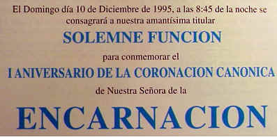 de la coronacion canónica de la Virgen de la Encarnacion y si no