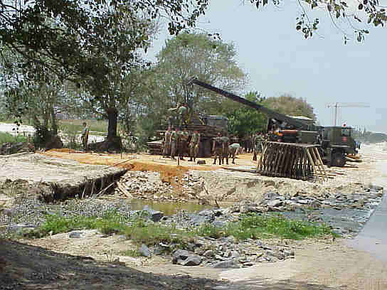 Rocio 2004 , esto mas que la romeria del Rocio, parecia como si estuvieran filmando la versión flamenca del El puente sobre el rio Kwait, como si los esclavisados soldados britanicos por las fuerza nipones, hubieran cambiado sus uniformes por el traje de faralaes y vestidos de gitanos ( como dice los que viene a las Ferias del Rocio ) Amen de una visión tan absolutamente rociera como desesperados soldados con megafonos, informando y pastoreando , a los peregrinos que en el puente solo se podia circular, pero no detenerces en el para cantar las tradicional Salve y sevillanas de haber culminado un Camino .-