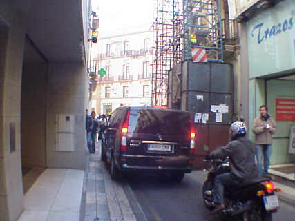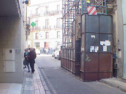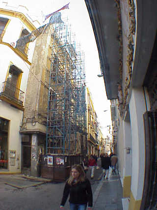 23 de Enero de 2005 En los diferentes "oscar" que nuestro Consejo de HH y CC entrega cada año, pregoneros, cartelista y designación de Imagen de Via Crucis; deberia de proclamar un cuarto oscar al mejor andamio que mas molesta. No estamos ante una situación ocasional, sino que lo mismo los naranjos de la Plaza de la Virgen de los Reyes , ya no floreceran proclamando la Primavera , en Sevilla los andamios son seres vivos que de pronto crecen en una calle con vocación de quedarse para toda la vida ( ver Entre la realidad y el deseo ) .- El otro dia lo decía y parecia que lo decía de coña, pero es absolutamente en serio, la cupula de MUNARCO, deberia estar presidida por un andamio historico sevillano de estos declarado monumento nacional , en una ciudad donde cualquier obra de restauración supera con creces , las obra de construccion original ( versus Catedral, Salvador Santa Catalina, Encarnacion y un vergonzante etc ).- Por otro lado las tropecientas mil tertulias, cuyo objeto social es el fraternal despelleje en Cristo, que presenta tropecientos mil carteles, cuatrocientos mil pregones, docientas mil entregas de los objetos cofradieros mas peregrinos, deberian de abordar este sector del mundo cofradiero inexplorado y a modo de "premio limón", hacer entrega de algun galardón ( un acopaldor, un tubo , un lo que sea ) a los responsables de estas molestias añadidas a nuestra Semana Mayor .- Según me informa un miembro de junta de una Hermandad X, este andamio sito en la calle O¨Donnell desde el otoño pasado , no se va a desmontar según le ha informado el Consejo de HH y CC y para subsanarlo piensan construir un entarimado de madera o plataforma de asfalto para igualar la acera con la calzada y de esa manera , pudieran o pudiese pasar los pasos de la cofradias afectadas : Si no ha entendido mis torpes palabras observe esta imagenes y lo comprendera del tiron :
