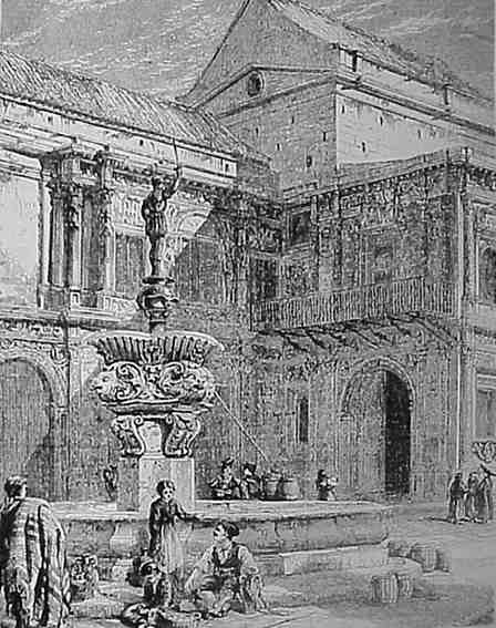 21 de Junio de 2005 Seguimos con la polémica de continuar o no el tallado de la fachada que da a la Plaza San Francisco y que vimos profusamente en AYUNTAMIENTO DE SEVILLA : ESQUEMA HISTORICO DE SU FACHADA PLATERESACA .- Como ayer tembien hablamos de LA FUENTE DE MERCURIO II quizas seria injusto que olvidaramos una pieza importante del trozo de fachada del siglo XVI autenticamente plateresaca diseñada por Diego de Riaños.- Como puede onservar en este bello grabado litografico de Capuy, si se fijan en la fachada del Ayuntamiento que da al arquillo, en su planta superior derecha habia un balcon de hierro que estaba sobre la puerta que da a la Avenida de la Constitución ( antes de Jose Antonio, antes calle Genova ) , a traves del cual habia una comunicación exterior , entre el Antecabildo alto y el Salón destinado a Archivo de Privilegios , sin necesidad de pasar por la Sala Capitular alta .- La importancia de esta magnifica obra de rejeria de Bartolome Morel fundidor del Giraldillo, fundidor de la fuente de Mercurio del Alcazar y fundidor del Mercurio, anterior al que ven en el grabado , robado en el siglo XVIII y que se veia desde su balcon.- En 1857 acordó el Ayuntamiento de la época la construcción del trozo de la actual fachada de la Plaza San Francisco y que ya vimos en el trabajo esquemático y ampliación del mismo . A la misma ve, como diria Don Manué, con estas obras de ampliación se llevó acabo la restauración de la parte original y antigua del siglo XVI, encargandosele las mismas al profesor Don Vicente Hernandez que lo primero que hizo fue desmontar y eliminar un balcon contemporaneo del Giraldillo . !! Ole !!.- Como ven en nuestra sufrida Sevilla no hay nada nuevo bajo el Sol y restaurar en la mayoria de las veces es simil de desmontar .¿ Se han dado un vuelta por el Salvador ?