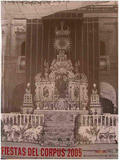 16 de Mayo de 2004 En esta ocasión la Delegación de Fiestas Mayores ha tirado de la Hemeroteca Municipal y ha publicado una foto de los años cuarenta en la que se ve un altar de Corpus que pertenece a la Hermandad Sacramental de Pasion ( algunos pueden tener la errada ilusión optica de pensar que estan viendo el altar de plata catedralicia, que tan del gusto es de nuestro arzobispo ) presidida por el Rey San Fernando en la fachada plateresca del Ayuntamiento de la Plaza San Francisco.- Antes de que los señores de la Hiniesta les de un ataque les aclaro . Fue en 1965 cuando por primera vez , en esta misma fachada del Ayuntamiento preside la Virgen de la Hiniesta Gloriosa, PATRONA DEL AYUNTAMIENTO.- La elección de cartel parece una paradoja, una broma de mal gusto justamente el año en que le ha quitado a San Fernando su dia festivo de fiesta local, cambiandolo popularmente por el Martes de Feria, Tiene guasa que precisamente este año , sea un altar presidido por él , el elegido para anunciar el Corpus Christi . Dificilmente se puede propugnar la sevillanidad de nuestro propio Patrón, al que le privamos de su dia.- Tambien para tranquilidad de todos en dicho cartel a pesar de que aparece San Fernando, en aquella época desde el Ayuntamiento nadie con el AdobePhotoshop se dedicado a colocarle escudisto der Berti y tras ser analizado desde muy cerca hasta ahora nadie ha detectado la presencia del escudo del otro equipo de la ciudad.- Esperemos que la futura comunidad musulmana de los Bermejales, a la que les vamos a regalar una mezquita tampoco se sienta violentada , por la presencia de San Fernando que en esta recuperación de la memoria historia, como ocurre en El Reino de los Cielos de Ridley Scott, donde los malos de la pelicula son los cristianos por dedicarse a matar moros, como Dios mandaba y Santa Madre Iglesia recomendaba.- San Fernando, era un señor intoletante que le dio mire usted por donde a cortar cabezas y atravesar con su lanza a los infieles , habrase visto que poca delicadeza , ponerlo en una portada de una celebracion catolica que a la fuerza quieren desacralizar por lo administrativo llamandolo "Fiestas del Corpus", con caballitos y tapitas en la Plaza de España . Oiga, ¿y la custodia de Arfe, los seises y los carrancanos ? Quien sabe igual cualquier dia vemos que nos quitan del escudo a San Fernando, a San Isidoro y a San Leandro y nos ponen a Ben Lande.- Y encima hay que darles hasta las gracias; pues por lo menos se ha molestado en sacar un cartel a pesar de la moda del laicismo por lo tremendo y curiosamnete nuestro Consejo este año que como el Rocio. el Corpus cae en Mayo no ha publicado ni un triste cartel recordastorio como venia haciendo hasta ahora . en una institución netamente católica como es el Corpus Christi .- En fin, como la portada esta dedicada a la Hermamdad de la Cena, pues tomemolos como un homenaje a la Hermandad errante y en la diaspora de Pasión y un recordatario a su tristemente perdido Corpus y al tremendo impacto que produjo la caida de una piedra, que provocó un crater de cinco metros de profundidad en el suelo como si de un meteorito por lo arqueologico se tratara.- Aqui el que no se consuela es porque no quiere