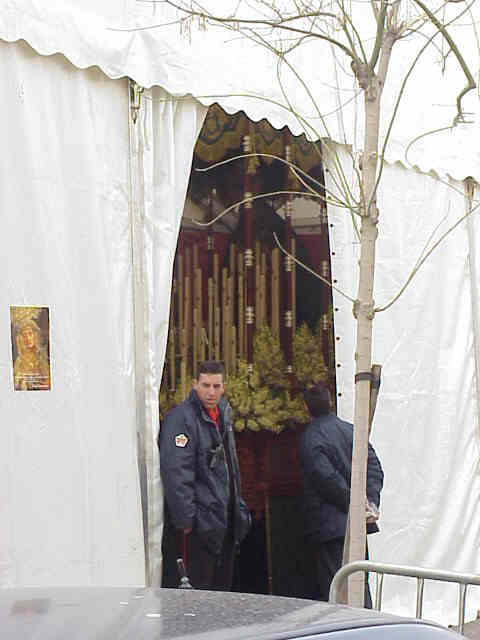 Creo que por primera vez en la historia de las cofradias de Sevilla, una hermandad sevillana, sale a la calle desde la calle, desde una carpa construida al efecto, curiosamente a caballo entre su casa hermandad, donde tiene su oratorio pagando religiosamente su alquiler y la parroquia del Plantinar que por ahora sigue sin abrirle las puertas.- Si las hermandades, parafrasenado a Ortega y Gasset son ellas y sus circunstacias, parece que esta ultimas han cambiado han desaparecido impedimentos que aparantemente eran insalvables, por ley de vida .- Hay un renovado espiritu en la Hermandad de Ave Fenix de aqui estamos, de aqui seguimos, tras atravesar una larguisima travesia del desierto .-