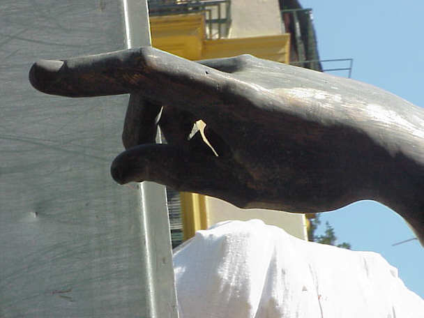 16 de Junio de 2005 Mi padre ( q.e.p,d) , tenia un amigo que se bebió la vida a grandes tragos, la verdad es que lo pasó muy bien; decía que cuando muriera, sacaria la mano de la ataud y diría : "! Ea! ahi os quedais", quizás el único problema es que no calculó v bien y vivio mas de lo que tenia previsto y su ancianidad le pasó factura de la magnífica vida que se habia pegado en su juventud y madurez.- No se porque , ayer al ver pasar el sepelio de la copia del Giraldillo, momificado, mas que amortajado en esta funda blanca , a alguien se le olvidó , envolverle la mano y pareciera o pareciese como si con la mano se despidiera de algunos haciendo, sin duda un extraño gesto, que entra dentro del mundo del misterio .- Quizás la copia del Giraldillo ha aprendido desde su privilegiada ubicación ,en la cuspide de la Giralda , que es una ciudad sucia, insegura, de un tráfico caótico, y que una calle si y la otra tambien estan en permanete obras, amen de que tenemos lo que tenemos en "Plaza Nueva" y "Virgen de los Reyes"; pero él sabia que era un impostor y que por encima de todo , los sevillanos tenemos y debemos que vender autenticidad. El formaba parte de un inadmisible decorado, por muy conseguido que este fuera .- Quizas desde su abono de palco , pedazo de palco con o sin ampliación de la Carrera Oficila ; veia y sufria las absurdas obras del Salvador y como se rayaba en el ridículo de cubrir un patio de los naranjos, con lo que el sabe de patios y de naranjos. De como año tras años se ha abierto por obras y cobrando ; con la cantidad de gente que ha visto aflojar la cartera , para entrar hasta la que ayer fue su casa y se han cerrado mañanas de Domingos de Ramos , Jueves Santos y mañanas de carretas que van para el Rocio .Tambien contempló desde su cuspide como de propina se caia a pedazos Santa Catalina , siendo la crónica de una muerte anunciada .Tambien estaba un poquito jarto de tanto palio p´arriba y tanto palio p´abajo, fuera de Semana Santa y se habra alegrado de quedarse con la seria imagen de ese imponente Catedratico entre cuatro hachones recortado las murallas del Alcanzar en su tiempo y hora , y no viendo cosas raras.- Quizas esa enigmática despedida iba dirigida a los que tienen como tienen y desde cuanto hace que la tienen la Encarnación ; o como nos han dejado la calle San Fernando con absurdos y faraonicos proyectos de desmontar , para volver a montar otra vez los cimientos de unas murallas, que las tenemos de pie en la Macarena ,paradogicamente abandonas y llena de mierda .- Quizas , él en su fuero interno sabia que tenia los dias contados del contrato basura de sustitución y en octubre de 2003 , vio a traves de las claraboyas y lucernarios de las Atarazanas, vio al Giraldillo original ,propietario de la plaza fija , que ya lo habia sacado de la UVI, que de la UVI lo llevaron a planta y que le habian dado el alta y gozaba de buena salud . Paradogicamente no comprendia como algunos , querian darle el puesto fijo a él, una copia del auténtico, con la antiguedad que tenia en el puesto.- Ayer , en el funeral de una Sevilla monumental
