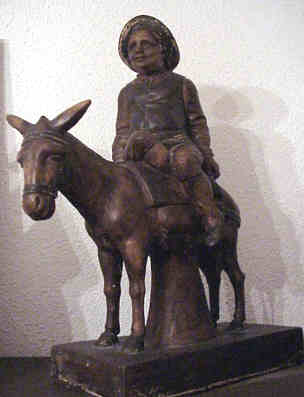 En dicha glorieta hay dos anaqueles ( estanterias, no de Ikea precisamente ) con diferentes lugares y fechas de la vida de Don Miguel de Cervantes Saavedra , sobre las cuales estaba estas dos figuras ( cuya reproduccion pueden ver bajo estas lineas ) ,en barro cocido , pero vidriadas y policromadas, representando a los protagonista cuya obra esta año celebramosel IV centenario , Estas figuras era obra de Eduardo Muñoz .- Como es tradicional en nuestra querida Sevilla, fueron robadas,y posteriormente respuestas en la Exposcion de 1992 y de nuevo volvieron a desaparecer. Por lo que lanzo a nuestro querido Ayuntamiento que por aquello del IV centenario se podria restaurar esta glorieta y reponer las figuras , dotandolas de algun sistema de seguridad, antichorizos y antivandalos. .- Aunque pensandolo mejor me da miedo, pues