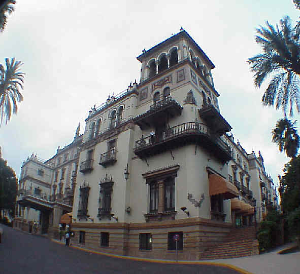 Obra del arquitecto José Espiau y Muñoz, fue contruido entre 1916 y 1928 , de claro estilo regionalista andaluz como era el imperante en la época, la obras se realizaron en los antiguos jardines de Eslava Siendo desde su construcción hasta la actualidad uno de los más lujosos establecimientos del continente europeo. Fue construido como el perpicaz lector habrá adivinado para acoger a los visitantes ilustres de la Exposición Iberoamericana de 1929, situado entre el Palacio de San Telmo y la Universidad de Sevilla .-