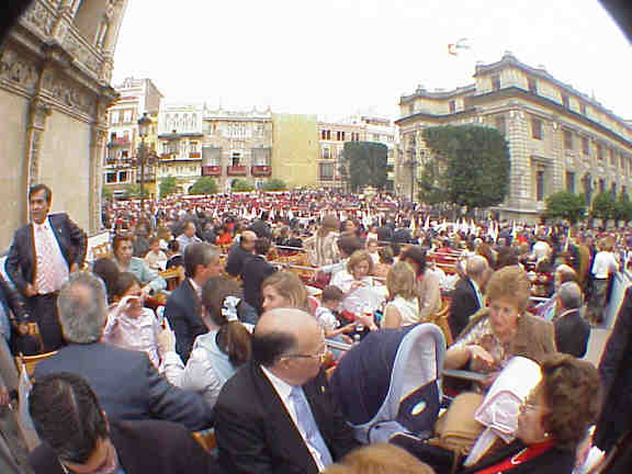 21 de Marzo de 2005 Un servidor siempre ha comentado que lo mismo que en Barcelona, tiene su Liceo, aqui en Sevilla tenemos dos y al aire libre ,uno es la Carrera Oficial y otro la Maestranza; pues veran tanto para ver las cofradias ,como para ver los toros hay que abonarse año tras años y generación tras generación .- Dejemos los toros , para los que solo falta unos dias y centremonos en lo que estamos . Lo gracioso de esta historia , es que los que van a las sillas o a los palcos se creen que van a ver pasar los pasos o las cofradias, cuando lo que realmente ve pasar es la vida. Es curioso muy curioso, ese primer dia de reencuentro, el Domingo de Ramos, donde se intercambian apretones de manos, besos, e inmediatamente hay que hacer un pequeño balance anual y familiar.- Uno se sorprende al ver como aquella niña de lazo en la cabeza hoy es una jovencita que extrena por primera vez sus galas de mujer o aquel niño que de forma impenitente demandaba caramelos o cera , hoy le han crecido los pantalones hasta hacerse largo, y tambien le ha crecido cierta pelusilla debajo de la nariz. De pronto aquella señora tan alegre y bibaracha, hoy la vemos con un traje negro y un lazo de oro con el escudo de su hermandad, pues su marido se fue al Cielo a ser una estacion de penitencia eterna.- Aquella abuela que era mucho de esta o aquella hermandad ,de la que fue camanera, tambien partio a esa Semana Santa eterna y de pronto aparece en su lugar un ceston o un carrito con un rollizo bebe , vestido de monaguillo. Aquellos apuestos jovenes caballeros ya empiezan a peinar canas y aquellas atractivas jovenes señoras se le empieza a perfilar las primeras arrugas esculpidas por la gubia del tiempo .- Es nuestra vida y la de nuestros vecinos que la que pasa y la que cambia . El auténtico milagro, es que son Ellos y Ellas, el Señor de Pasion , El Gran Poder, la Macarena, El Cachorro, el Señor de la Penas, o la Soleda de San Lorenzo los que desde sus misericordiosos ojos nos ven desfilar ante ellos, añor tras, años, siglo tras siglos, generación tras generación .- Quizas por eso cuando nos llegue nuestros dia y nuestra hora , lo tendremos infinitamente mas facil, pues ellos habran visto el devenir de nuestra mortal existencia , de como cuidamos o descuidamos a los nuestros, como los queriamos o malqueriamos , de como le rezabamos , de como le dabamos gracias a su paso y en su paso .- Nosotros los tristes mortales, lo pobres pecadores, enchidos de vanidad y poseidos de la errada creencia de una juventud y vida eterna, que no paran de vendernos , somos las marionetas que desfilamos, ante dos protagonistas y espectadores eternos el Hijo de Dios y su Bendita Madre, en este gran Liceo de la vida llamado Carrera Oficial, con sillas en lugar de butacas de patio y palcos a modo de departamente de un tren , donde el paisaje que vemos al pasar es el de nuestra propia existencia y la de nuestros vecinos .-