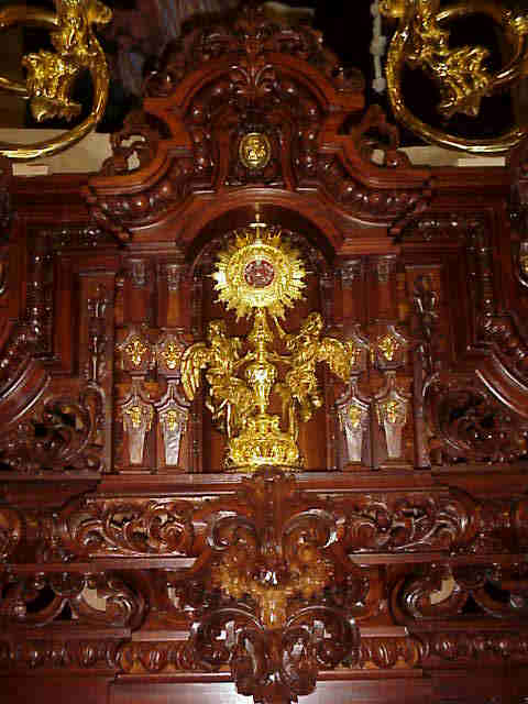 , que aqui vemos , se sitúa una Custodia con dos ángeles,