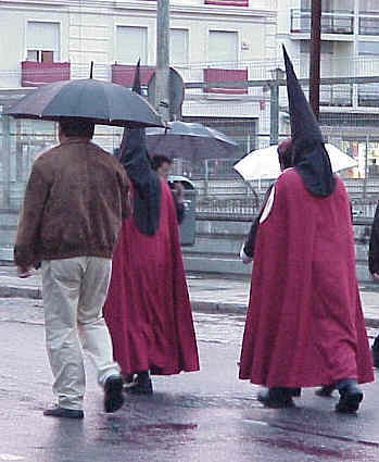 Nazarenos bajo la lluvia de un insolito Miercoles Santo donde no salio ninguna algo que se pierde en la memoria historica de la Semana Santa sevillana.- |