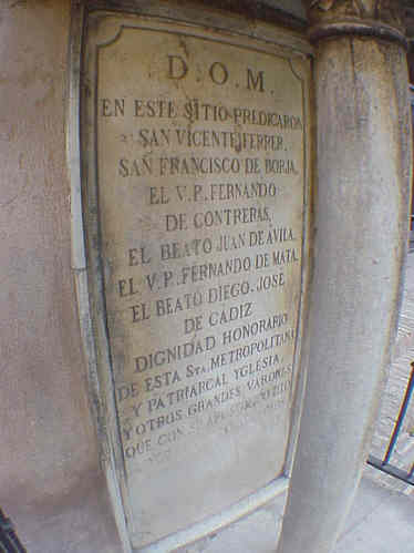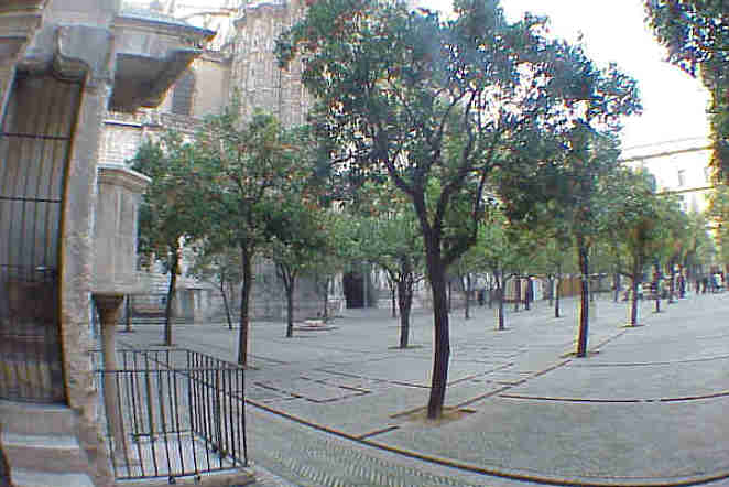 13 de Enero de 2005 Lo mimos que en Sevilla, El Caballo , es el Monumento al Cid ( el Cid hoy en vez de un heroe seria un ser politicamente incorrecto, que en vez de envolver al moro invasor en las silentes pateras con mantas y termos con leche caliente y galleta; al moro invasor en barcos con corceles arabes y cimitarras , les cortaba la cabeza de una forma poco tolerante ), el púlpito; no es una tertulia cofradiera dedicada al fraternal descuartizamiento en Cristo cosa que se hace con gran virtuosismo con la sin hueso , sobre todo cuando se retira alguno d elos tertulianos ; el púlpito, repito y para que se no se despiste, es este que aqui ven y sito en el Patio de los Naranjos de la Catedral de Sevilla .- Por cierto el Patio de los Naranjos de la Catedral de Sevilla , esta catalogado como Patrimonio de la Humanidad y CONTINUA CERRADO AL PUBLICO " PROVISIONALMENTE " desde 1992 ( antes era un lugar de transito libre e incluos los niños jugaban en él . Hoy forma parte de la Parque Temática Catedral de Sevilla, es decir de pananini y por ahora es al aire libre, no han cometido la averación de cubrirlo y climatizarlo como el Patio de los Naranjos del Salvador ( alli tambien hay que pagar ). Por ahora este Patrimonio de la Humanidad, es el parque logístico catedralicios lleno de cabinas de obras ( una combertida en tienda de recuerdos ,otras en cuartos de baños , etc ) portatiles y manparas donde ocultar maquinaria y material de obra; ... coño para eso es Patrimonio de la Humanidad .- Trnaquilidad ...; arriba ven una impresionate "fotografia" ( es una broma ,es un sobervivio cuadro al oleo ) del mas conocido fuera que dentro de Sevilla, de nuestro paisano pintor Jimenez Aranda fechado en 1879. En el se ve a una franciscano dando un sermón, que para eso se construyeron los púlpitos, arrengando a una hermandad de Gloria ,posiblemente al iniciar o terminar un rosario de la aurora.- Comparen el cuadro con la foto de la actualidad