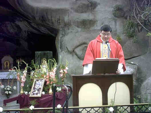 de la gruta de Lourdes, honrándola estaban las banderas de Argentina,