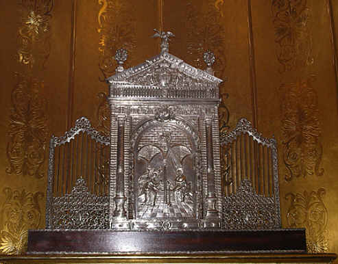Este llamador , no es un llamador de un paso penitencial, ni de gloria, lo que no quita que sea una joya una perfecta maqueta , que si identifica el edificio que representa podran sacar por deduccion donde va .- Efectivamente es una impresionate reproduccion de la fachada de la Iglesia de San Ildefonso , al minimo detalle y va en el pequeño pasito-andas donde realiza el Via Crucis el Cautivo de San Ildefonso.-