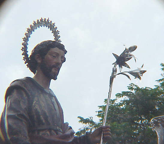 SALIDA PROCESIONAL DE SAN JOSE OBRERO AL FONDO SU PARROQUIA |