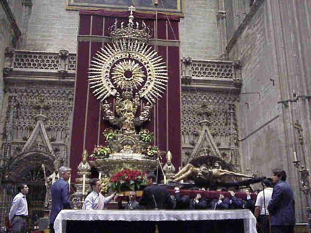 Llegada al altar de plata catedralicio donde se celebrara Misa Somene