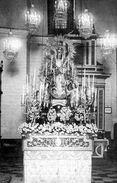 6 de Mayo de 2005 Hoy Don Victor José Gonzalez Ramallo, viaja en su "maquina del tiempo", hacia un mes de Mayo mariano de principios del siglo XX y nos trae esta joya : En este fin de semana de este mes de mayo a un tiempo rociero, glorioso y eucarístico tendremos ocasión de presenciar una de las procesiones de gloria de más solera, la de la Virgen de la Salud de la parroquia de San Isidoro.- Con una antiguedad que se remonta al menos a 1674 la Hermandad rinde culto a una interesantísima talla de la primera mitad del siglo XVI de gran devoción através de los siglos. Sin embargo en la segunda mitad del siglo pasado la corporación estuvo a punto de desaparecer, dejando de realizar su anual procesión hasta que el 6 de mayo de 1981 salió desde San Isidoro hasta el Salvador para presidir al día siguiente el Pregón de las Glorias. Vinieron después años difíciles con el cierre de su parroquia que le obligaría a salir desde diversos templos. Así en 1985 lo haría desde la sede provisional de la parroquia en las andas de traslado del Señor de las Tres Caidas, en 1986 desde San Alberto en el paso de la Virgen de la Cabeza, en 1987 desde El Salvador ya en su paso habitual y posteriormente desde La Anunciación hasta que en 1991 volvió a salir desde su sede una vez completada su restauración integral. La fotografía con que ilustramos nuestras palabras podemos datarla en el primer cuarto del siglo XX y en ella vemos a la Virgen de la Salud en su sencillo paso anterior. Las andas actuales estrenadas en 1949 las realizó el maestro Currito al igual que los airosos candelabros.- La Virgen está enjoyada y luce el manto