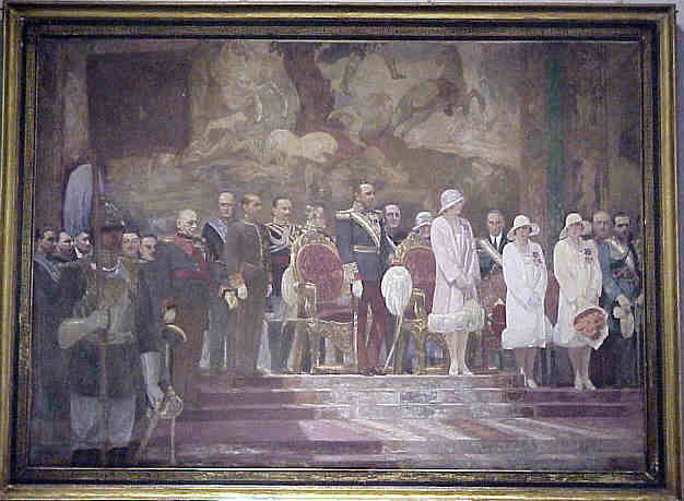 En la parte superior vemos La inauguracion de la Exposición Iberoamericana de 1929 obra del pintor Alfonso Grosso. Ademas de estos estan la Toma de la Loja por Fernando el Catolico obra de Eusebio Valdeperas , los retratos de Fernando VII y Maria Cristina de Napoles obra de Carlos Blanco
