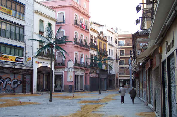 15 de Diciembre de 2005 La asociación de comerciantes de Puente y Pellón, ha decidido decorar la Plaza del Pan con dos originales palmeras de plástico, lo que, han acompañado de la arena sobrante de las obras .- Suponemos en buena logica que dada la inmediata vecindad de la Parroquia del Salvador , ( "Abierta previo paso por taquilla por obra") que estamos ante un homenaje al paso de Misterio de la Borriquita, que se encuentra refugiado en la Iglesia de la Anunciacion y que dudamos mucho que vuelvan por esto lares .- Es de destacar que no esta la figura de Zaqueo, que por cierto lo podria hacer patron de Parques y Jardines, dado que esta con el hacha talando hojas, con lo que le gusta a esta departamento de nuestro Ayuntamiento Obrero Español talarlo todo .- Quizas estamos equivocados y como nuestra IU también propondrá en el Pleno solicitar al Gobierno español que presente al Parlamento Europeo la creación «de un comité evaluador de la gravedad de la contaminación de Faluya en Irak, pues igual es un homenaje de hermanamiento a esta localidad iraqui .- El libro de los gusto esta en blanco y el del mal gusto mejor no escribirlo, pero no hay duda que en una ciudad donde tenemos La Palmera , un paseo inundado de palmeras, por donde van la criaturitas ar campo er Beti ademas de las que hay en la Plaza de America o Parque de la Palomas, poner una cosa como "esto" , sencillamente es de un penoso mal gusto , que desgraciadamente campea por sus respetos en nuestra ciudad y lo grave es que no habra ningún " a quien corresponda de turno " que ordene la retirada de esta hortera digna de la "casa de la Omaita" , pues el mal gusto debe ser por lo menos privado .- Puesto que la Plaza del Pan al final ha quedado