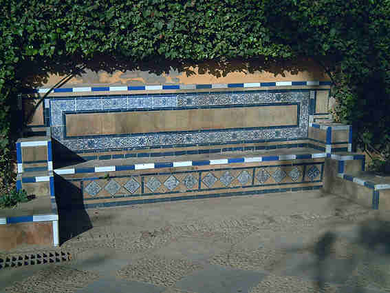 La Navidad con el Portal de BelenAsi que emprendedor comerciante si se les acaba el repertorio de señoritas semidesnudas, jugadores de futbol o imagenes semanasantera, aqui tienen un temática original y sevillana, en azulejo añil y en un banco de un enjaulado paseo protegido de las fieras de la movida .-