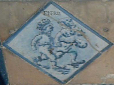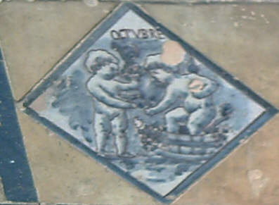 Pues como siempre le digo que en Sevilla hay que ir por la calle mirando mas que un borrico atado a una tapia, en el Paseo de catalina de Rivera ( en los Jardines de Murillo para que no se me despisten ) hay un par de bancos donde en su base, hay este simpatico calendario permanente , protagonizado con un par de angelitos que se amoldan a la climatologia y estaciones agricolas del mes en cuestion.-