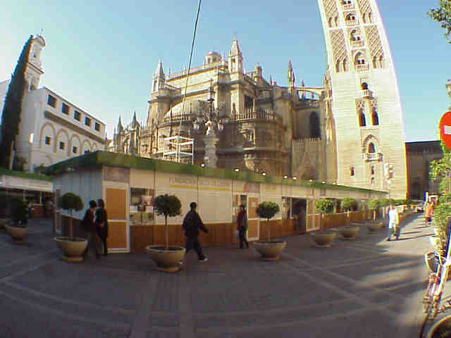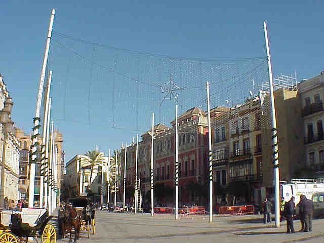 26 de Noviembre de 2005 Sevilla, como decia Carlos Cano de España, huele a pueblo, pero a pueblo ,en el pero de los sentidos, puEblo de pueblerino y cateto, pues a todas luces esa es la indiscutible visión que de nuestra cada vez menos capital tiene nuestra DelegaciÓn de Fiestas Menores .- Sevilla ,es una ciudad desde nunca se marcho la Expo del 92 y hemos imitado las fallas de Valencia, los San Fermines, los abrazos al Santo Apostol etc. Un año mas y para lucro de unos cuaNtos se haN montado en plena Plaza de la Virgen de los Reyes, quizas la mas universal y fotografiada de todas las plazas de nuestra ciudad, estos chirringuitos belenisticos , cuando todavia no ha empezado ni el Adviento, es decir cuando el Angel del Señor, no le ha pegado aun el susto de muerte a la Virgen informandola que estaba embarazada , por obra y gracia del Espiritu Santo .Estaran conmigo que Maria Satisima tuvo que pasar un trago y serios problemas, para explicar todo esto a sus familiares .- Por lo visto, no hay otro mejor sitio donde poner estos tenderetes jugando a Plaza Mayor de Madrid. Lo que esta claro es que si el atribulado Pepe Isbert, paseara por aqui con su nieto , no tendria problema pues seria imposible que se perdiera , en esta pauperima pretenciosamente llamada "Feria" del Belen . Que raro que lo mismo que hasta hace dos dias nos llenaron nuestras calles de titiriteros vestidos de Quijotes , como patético a homenaje a dicho personaje literario , no haya contratado algún anciano para que se dedique a dar vueltas por esta plaza , preguntado a la gente si ha visto al desaparecido en combate Chencho .- Por cierto afortunamente nuestro desbastador Ayuntamiento Obrero Español, con lo que le gustan la desfortestacion urbana , los alcorques sin arboles y los arborosidio, no se han dado cuenta del cipres que hay pegado junto al Convento de la Encarnacion , sino a buen seguro lo habria arrancado, siguiendo la misma suerte que el cipres que habia junto a la capilla del Consejo de HH y CC o los arboles trianeros .-