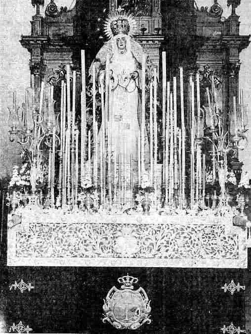 unos candelabros posteriores. La Virgen luce la corona de finales del XIX