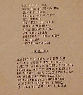 Dentro de la sala de cabildos se ve perfectamente los arcos ( asi como en otras dependencias y patios del Hospital ) y tambien la firma de las Reales Atarazanas, esculpida en piedra y a su lado una transcripción en latin mecanografiada y su traducción al español . Para los que anden mal de la vista se lo amplio :