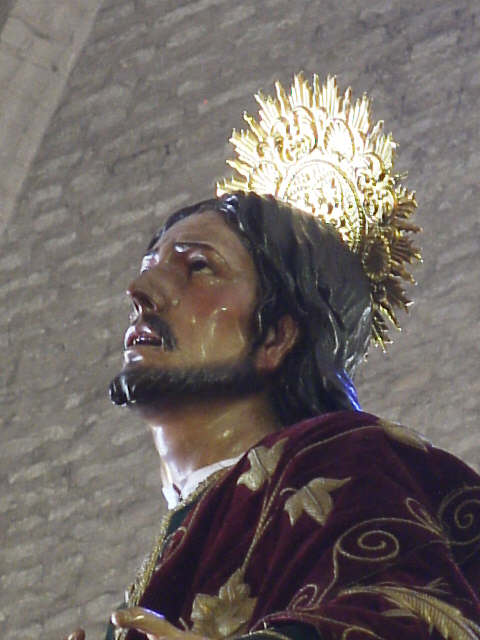 Pero seguimos, hay un San Juan Evagelista titular de una Hermandad concretamente de la Esperanza de Triana, que es el único en procesiona en solitario , haciendo en la procesión del Corpus Chico de Triana como ven en la imagen siguiente saliendo de Santa Ana .-